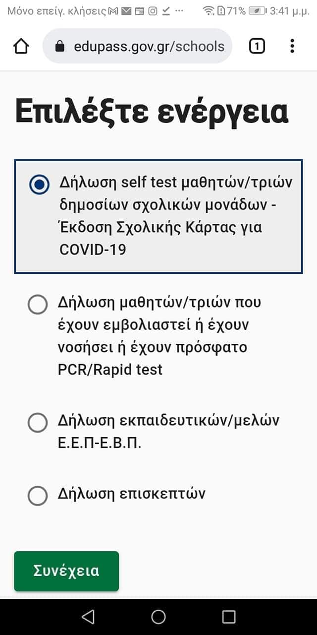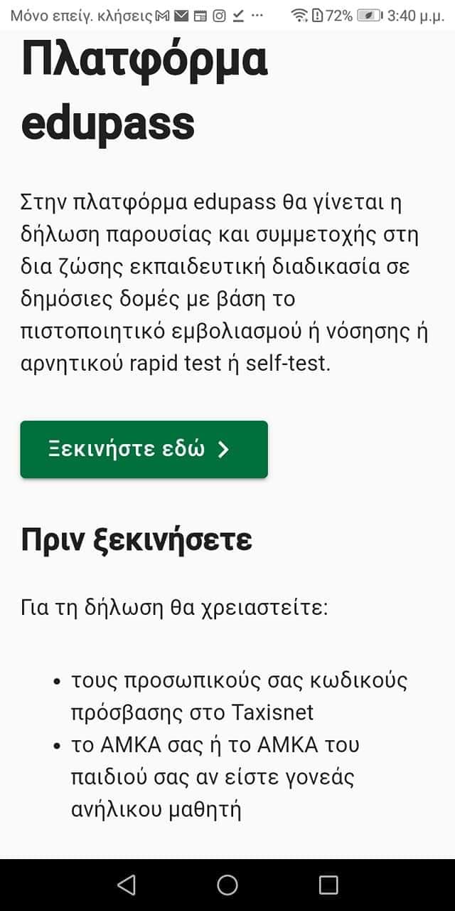 Τα βήματα που πρέπει να ακολουθήσουν οι γονείς για τη δήλωση self test covid στην πλατφόρμα edupass.gov.gr .Απαραίτητοι οι κωδικοί taxisnet των γονιών, όπως και το ΑΜΚΑ των μαθητών.
