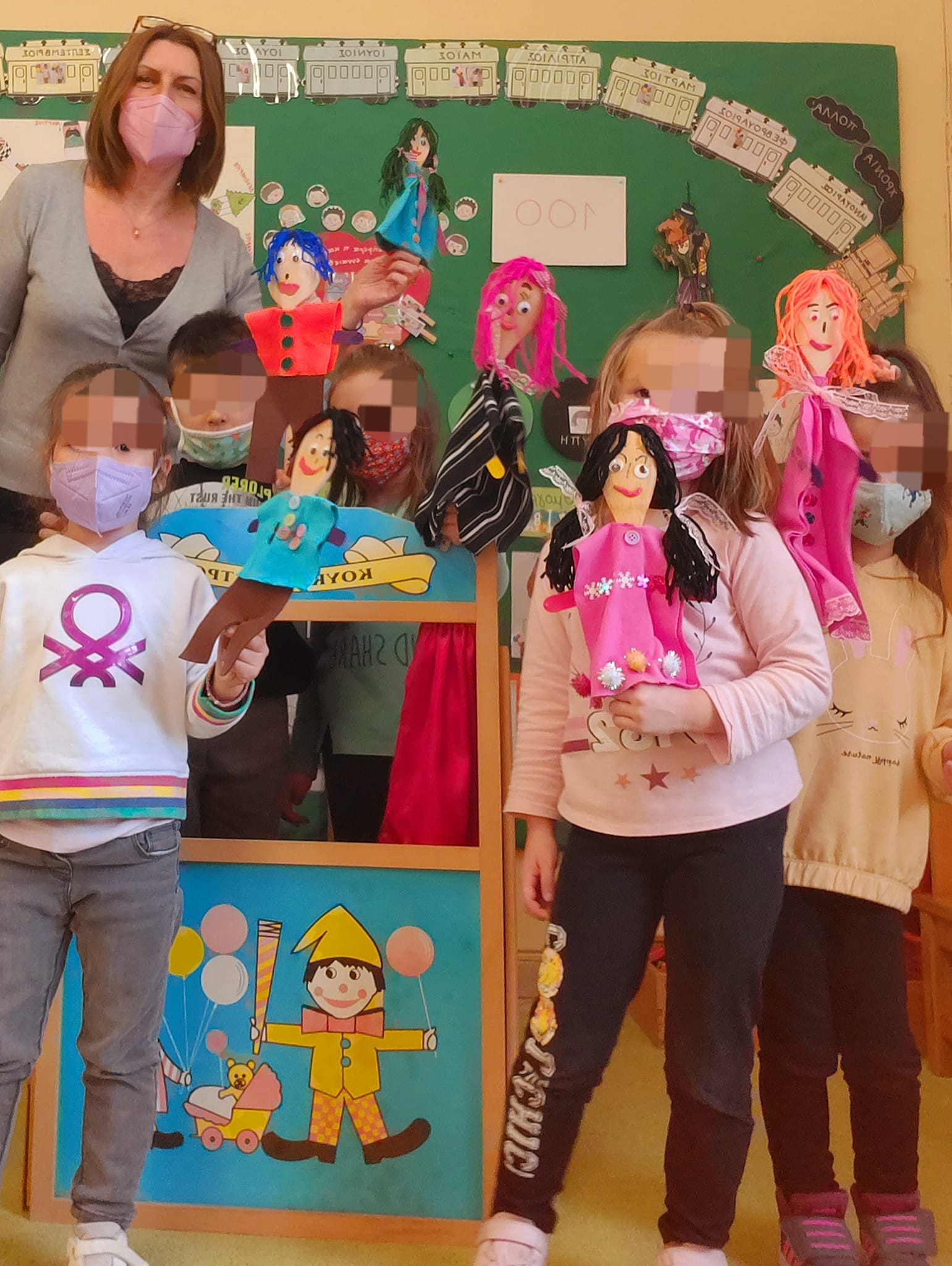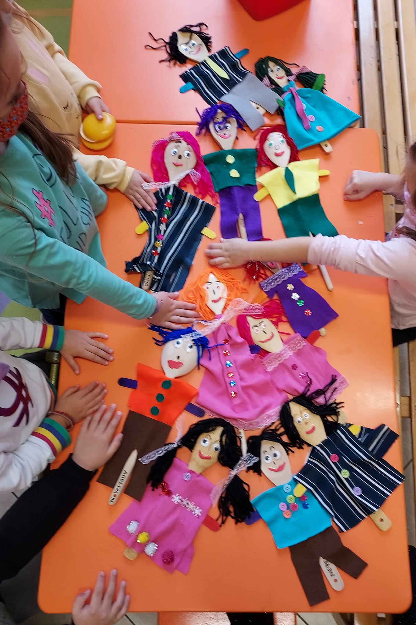 Φτιάξαμε την κούκλα βοηθό του κάθε παιδιού με κουτάλες μαγειρικής και απλά υλικά. Η κούκλα ειναι σπουδαίο παιδαγωγικό εργαλείο.Λειτουργεί εκπαιδευτικά και ψυχαγωγικά, απελευθερώνει και τα πιο διστακτικά παιδιά και συχνά λειτουργεί σαν αντικείμενο μετάθεσης του φόβου .